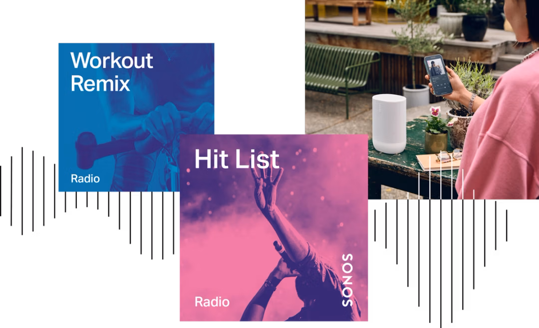 Слухайте підібрану музику та тисячі радіостанцій у прямому ефірі від Sonos Radio. Не потрібно завантажувати додатки чи створювати обліковий запис.